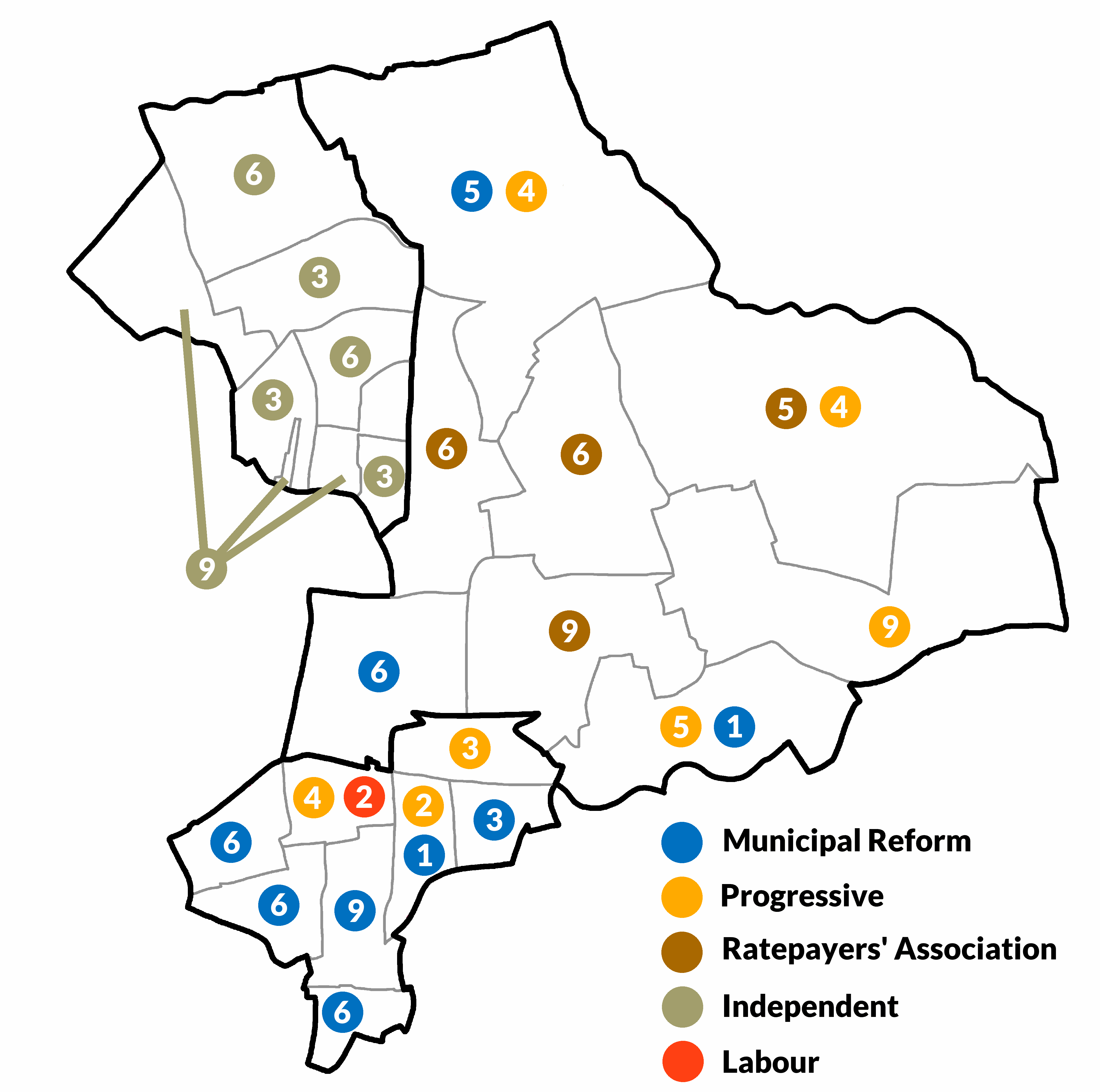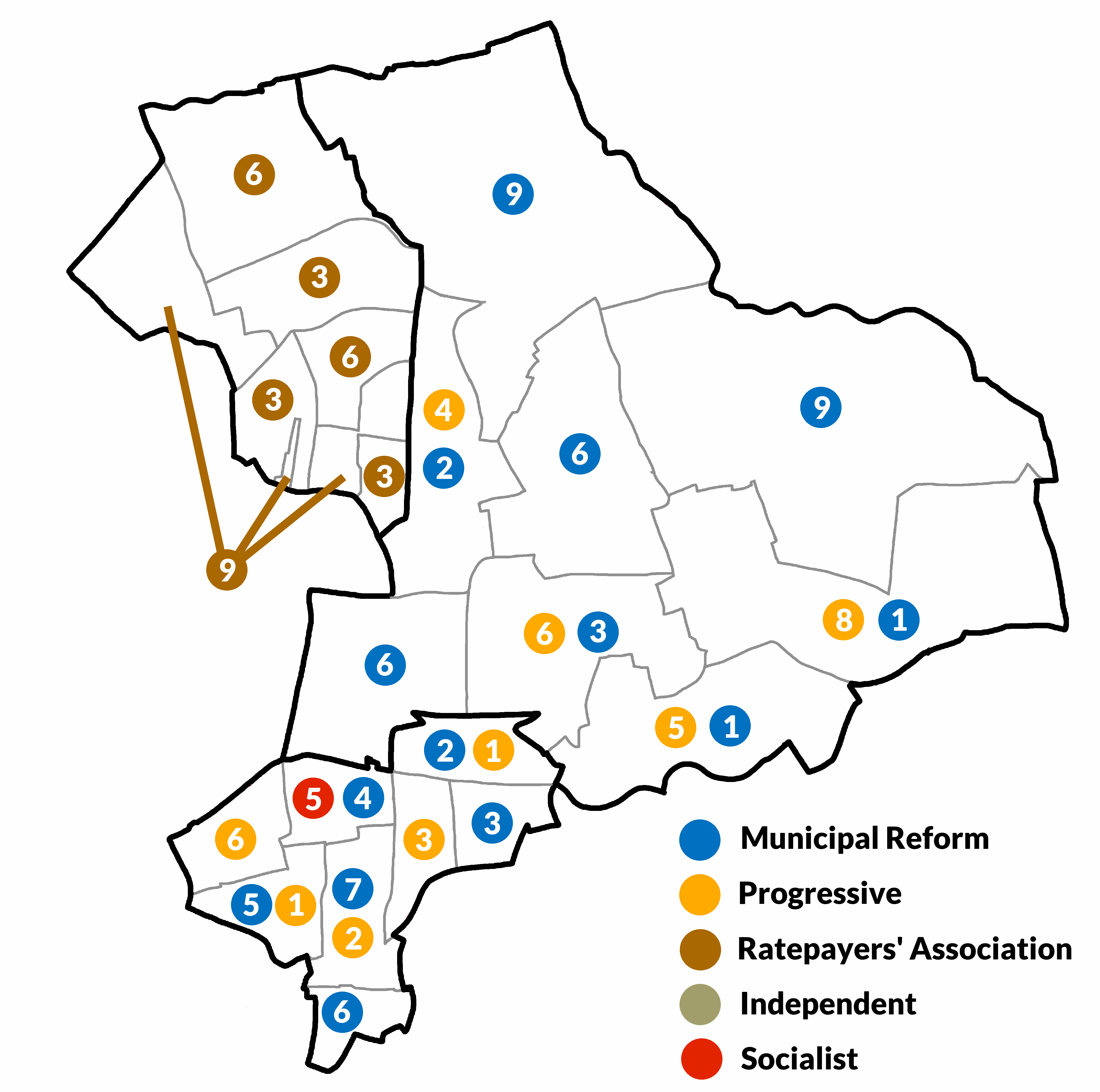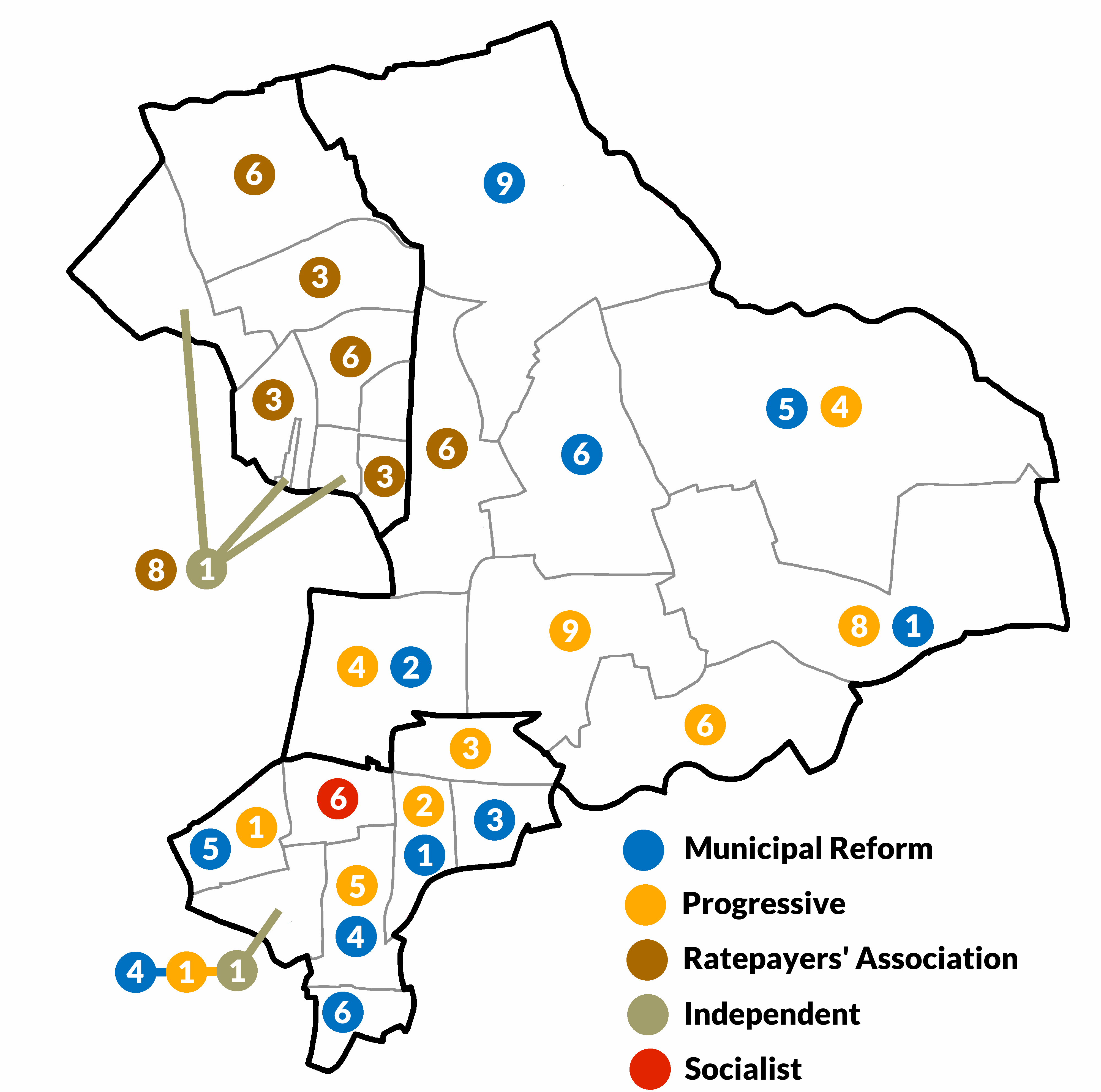 Progressive 31 Municipal Reform 23 Ratepayers 6