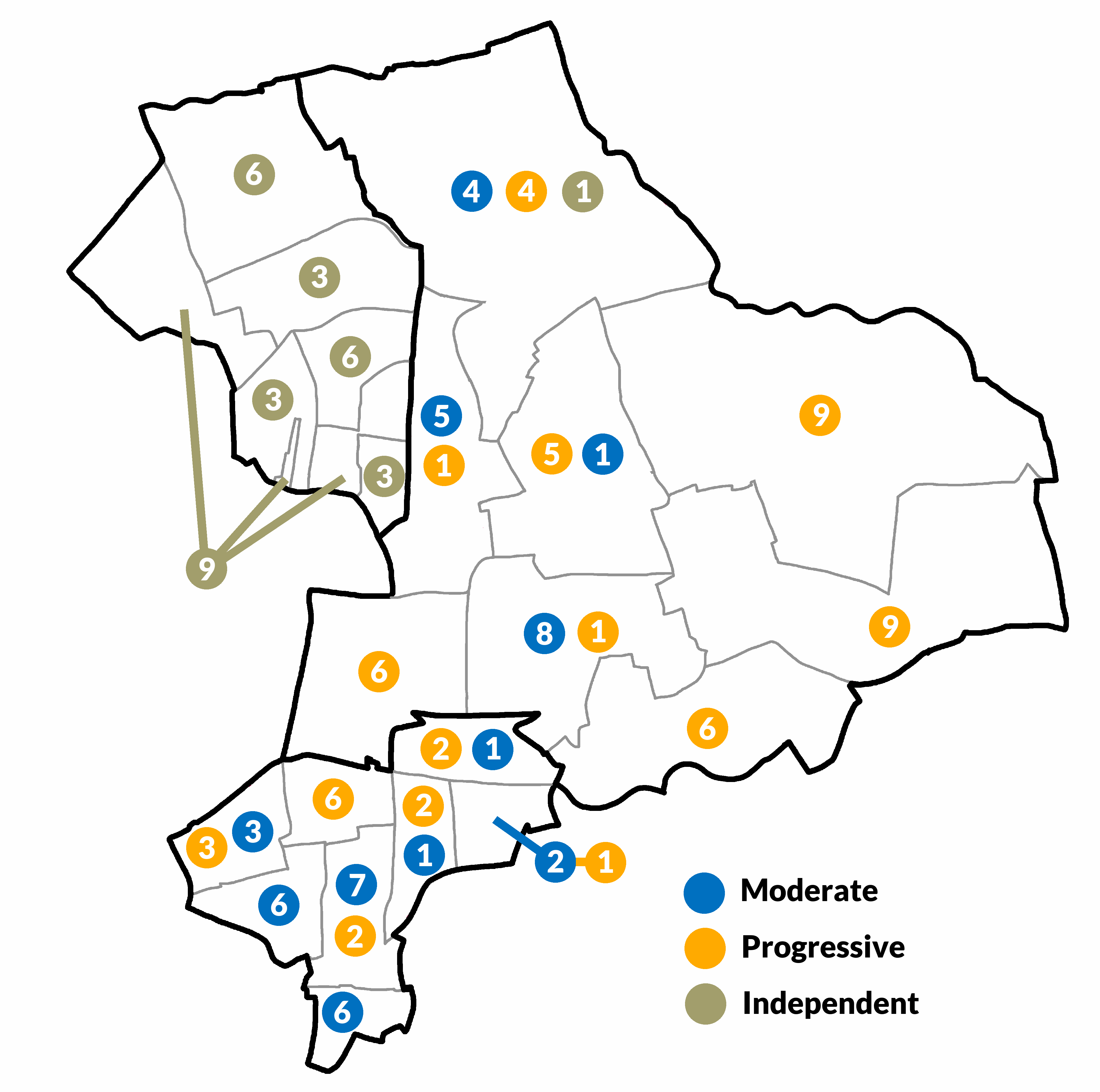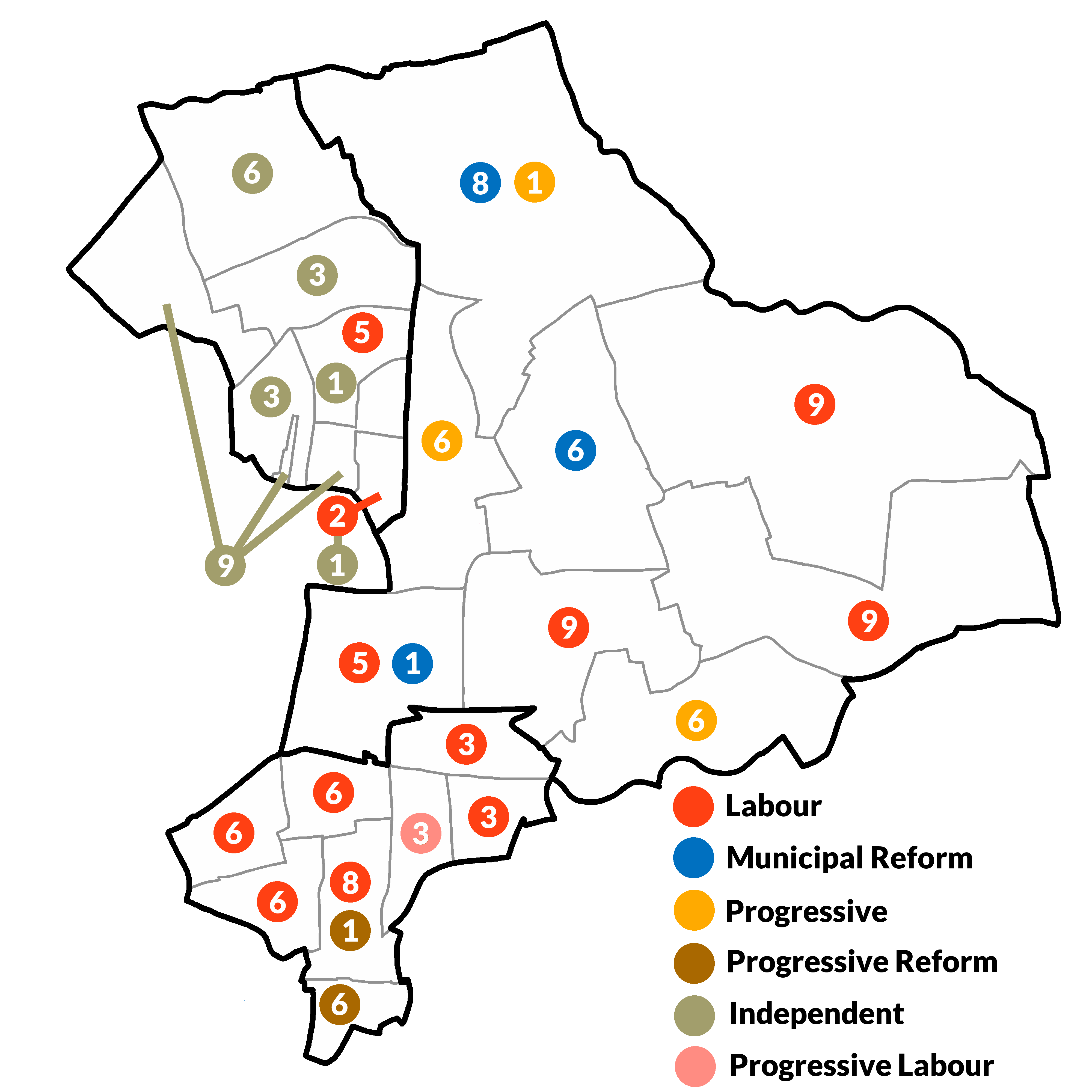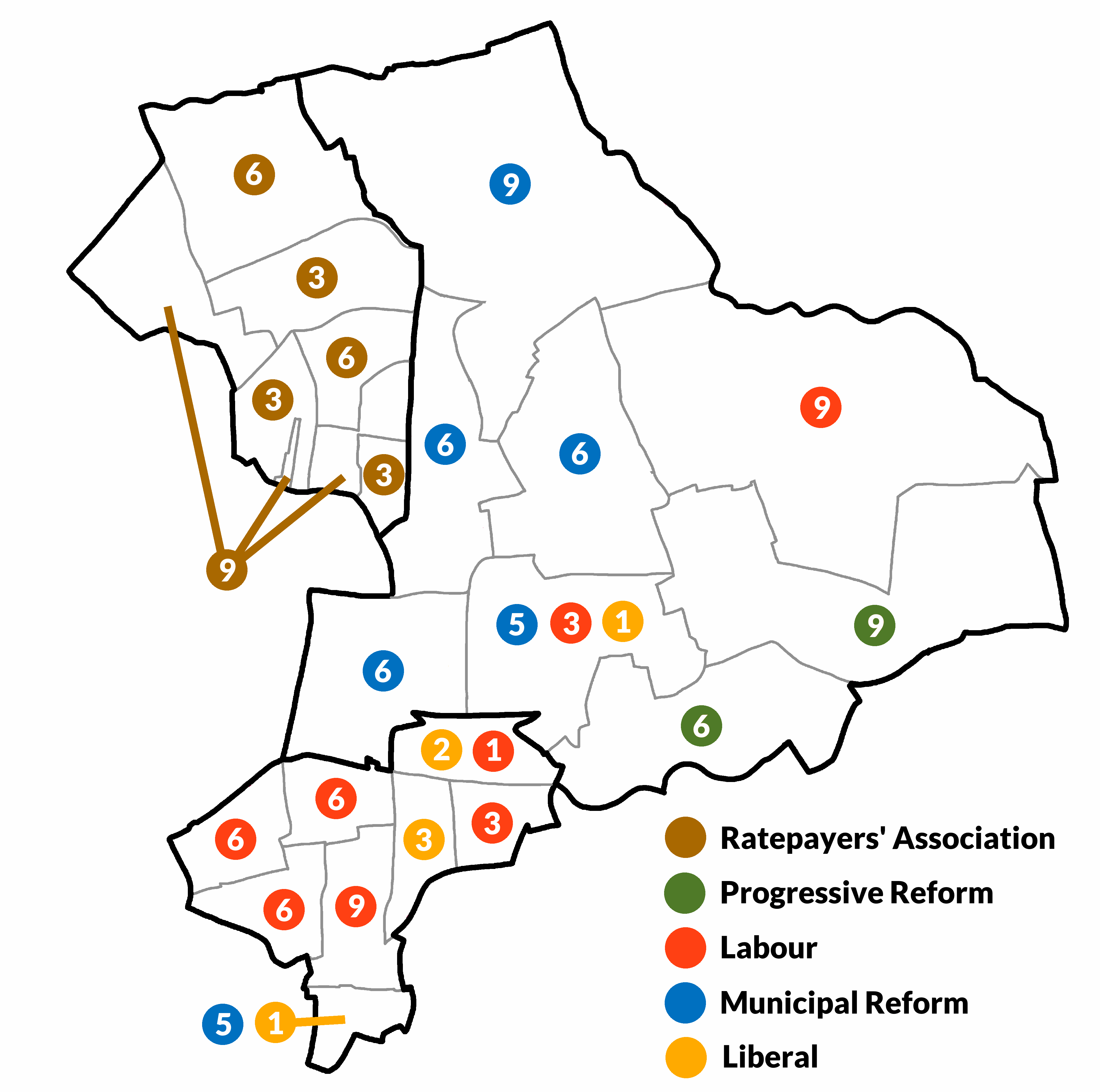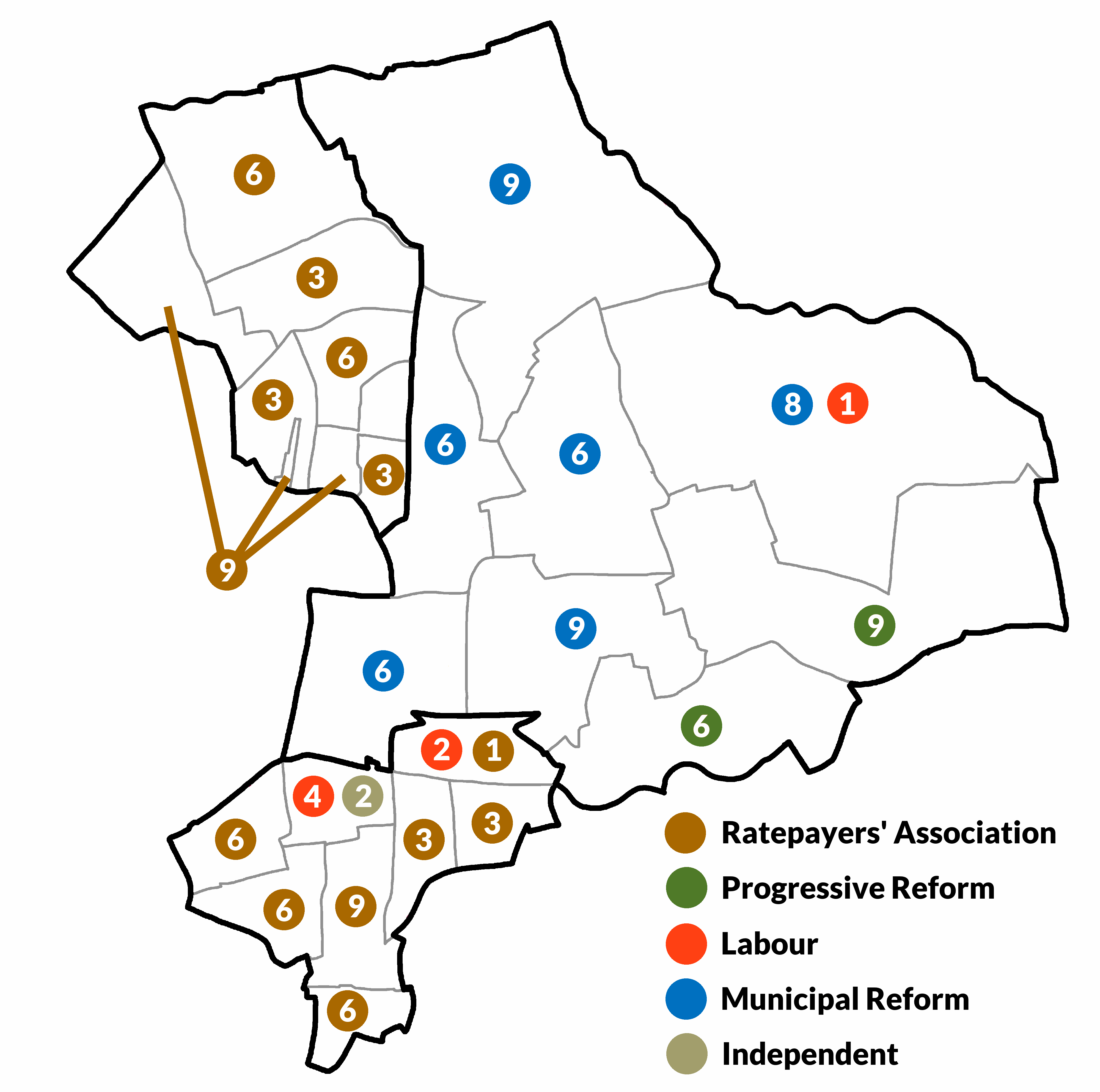 Progressive 31 Municipal Reform 23 Ratepayers 6